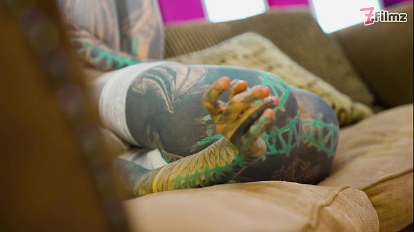 Tattoo lesbian girls cum play with fantasy dildo in pussy anal fun ass to mouth sextoy masturbation